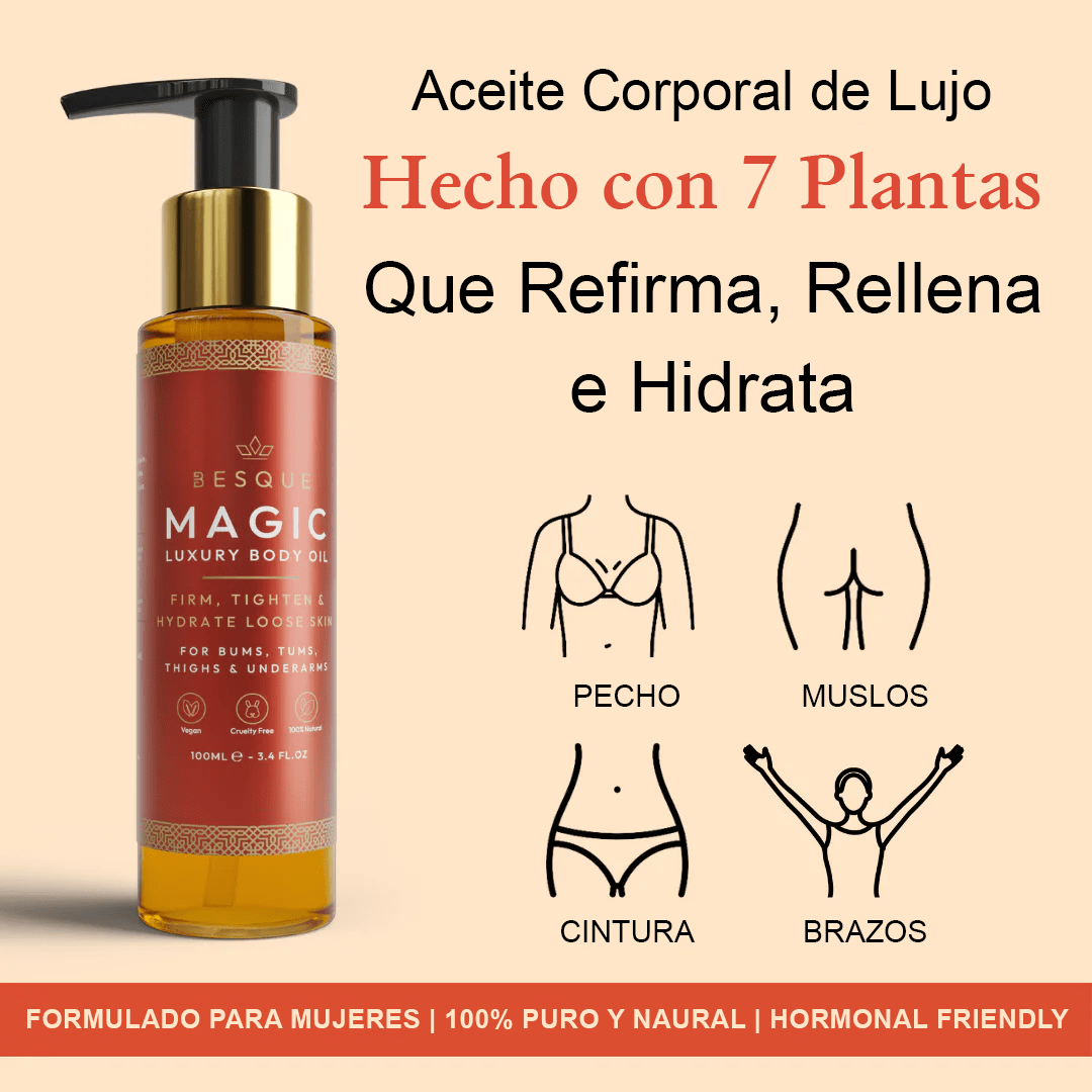Luce una piel naturalmente firme y radiante con nuestro poderoso Magic Body Oil, creado para realzar tu verdadera belleza. Es tu cuerpo.